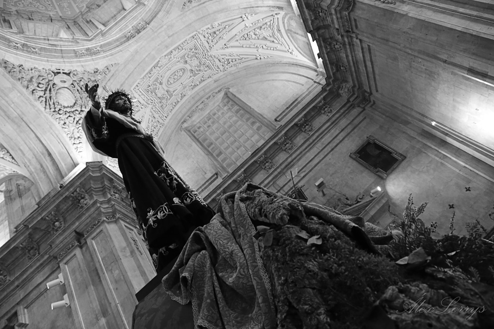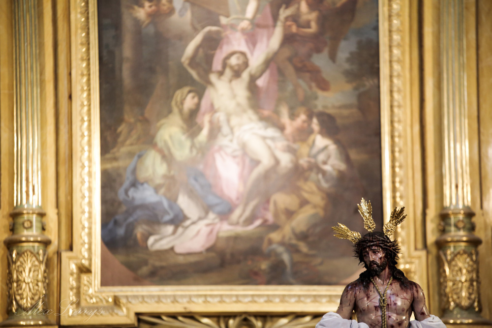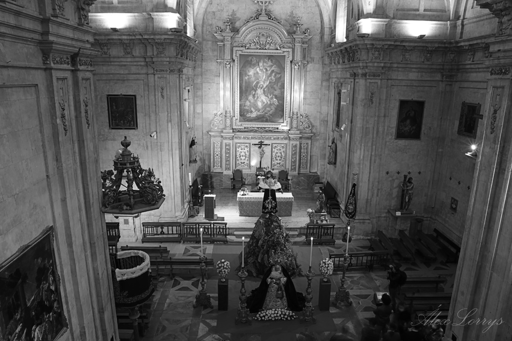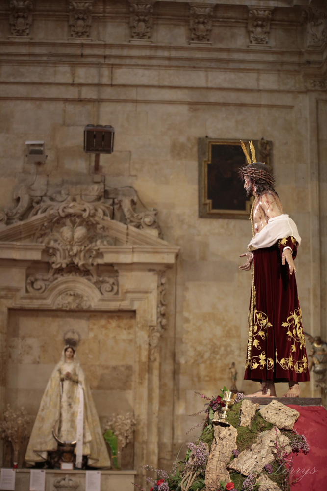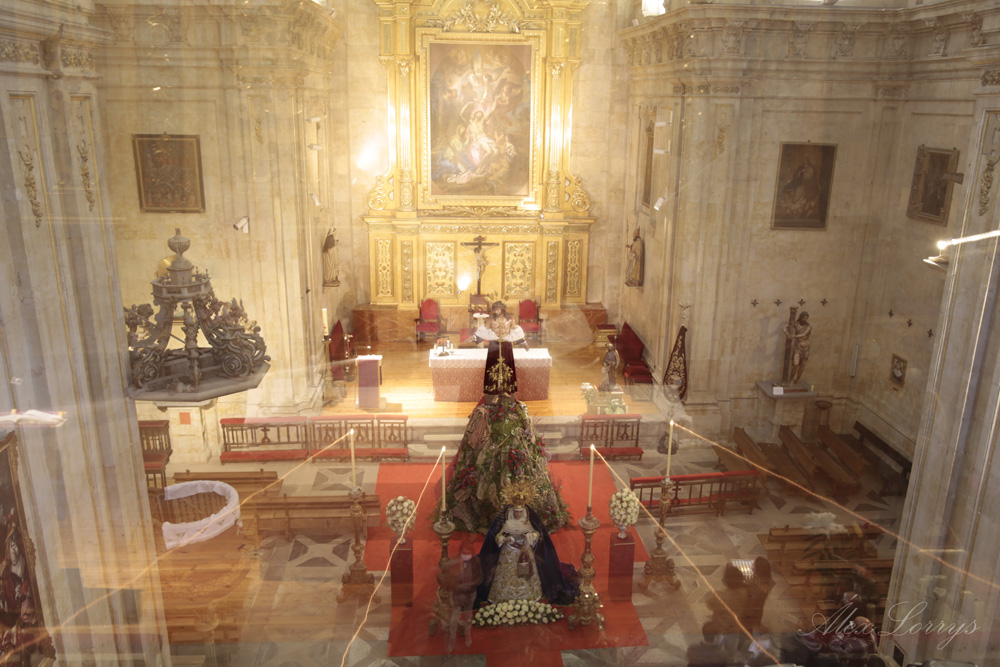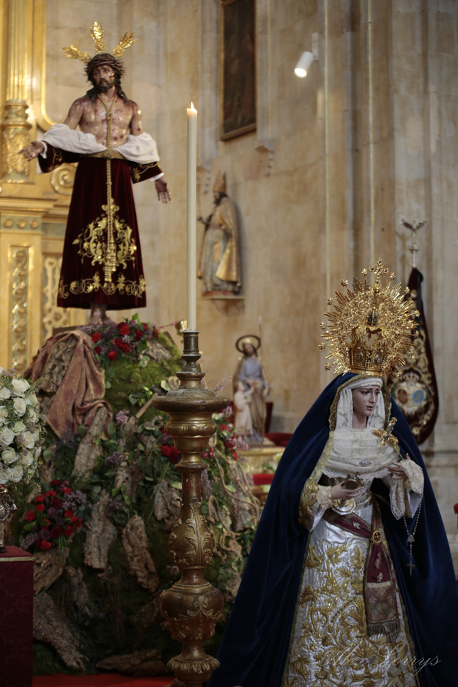 En la sencillez reside la belleza. Es en lo primero en que piensa uno al poner un pie en la iglesia de San Sebastián, una pequeña parroquia en la plaza de Anaya, pero que es una de las joyas que esconde la Salamanca monumental. Y la sencillez y la belleza son la casa de Nuestro Padre Jesús Despojado de sus Vestiduras y María Santísima de la Caridad y el Consuelo, esperando un Domingo de Ramos diferente, pero, un año después, con su gente: