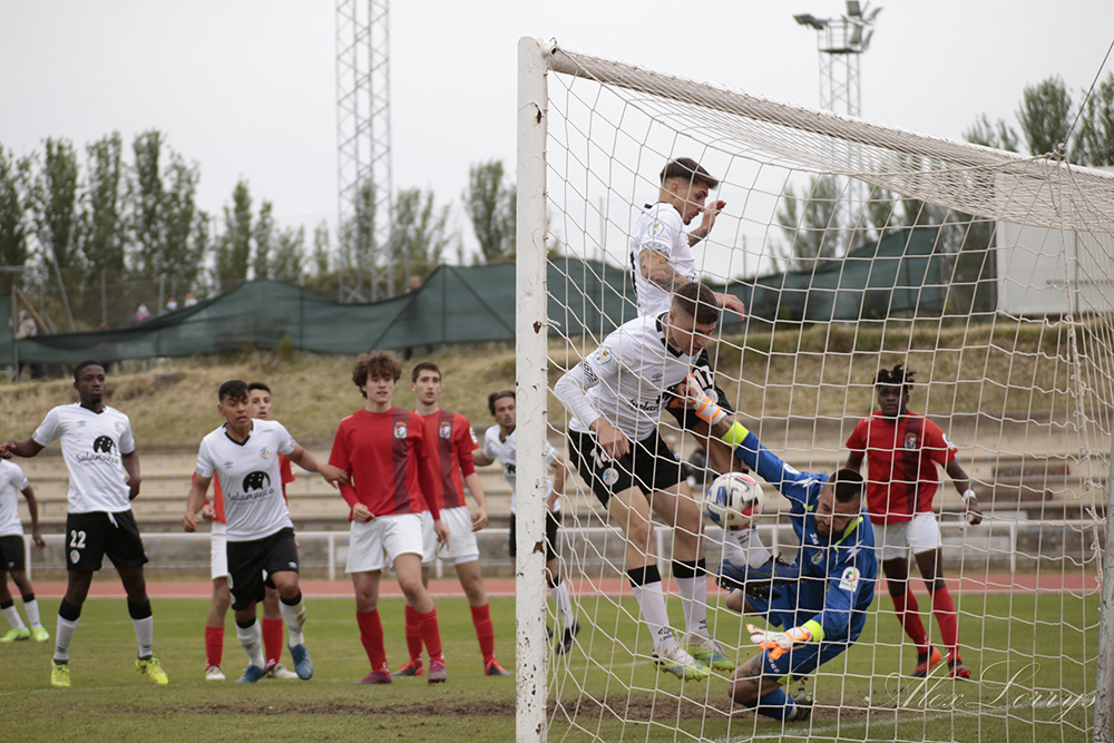 Fotografías del partido de la 8ª jornada de la Fase de Permanencia en Tercera RFEF entre el filial del Salamanca CF UDS y el Real Burgos CF, en Las Pistas del estadio Helmántico (2-1):