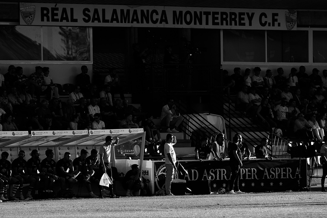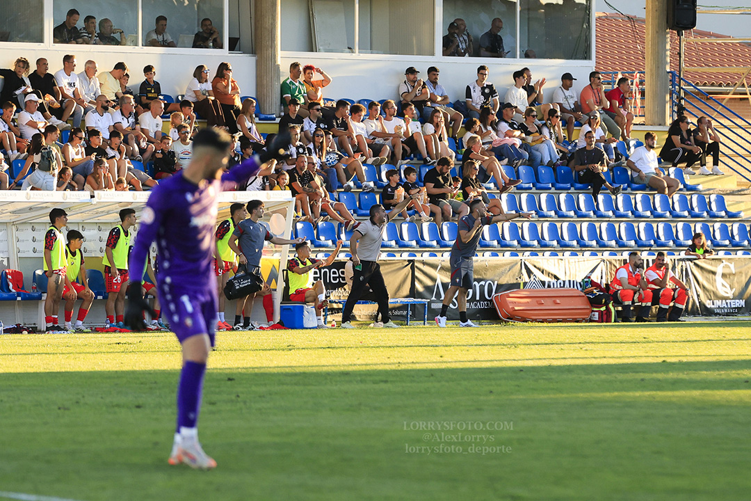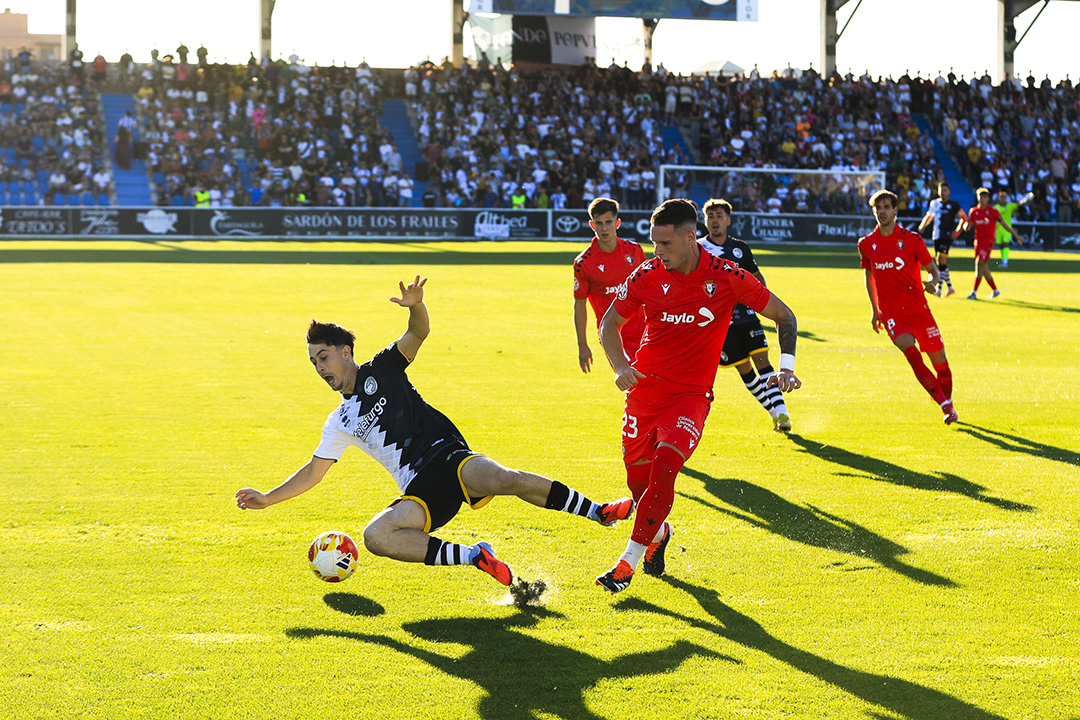 Fotografías del Unionistas de Salamanca – CA Osasuna «B» de la primera jornada del Grupo 1 de la Primera Federación Versus e-Learning 2025/26, en el campo municipal Reina Sofía (0-1):