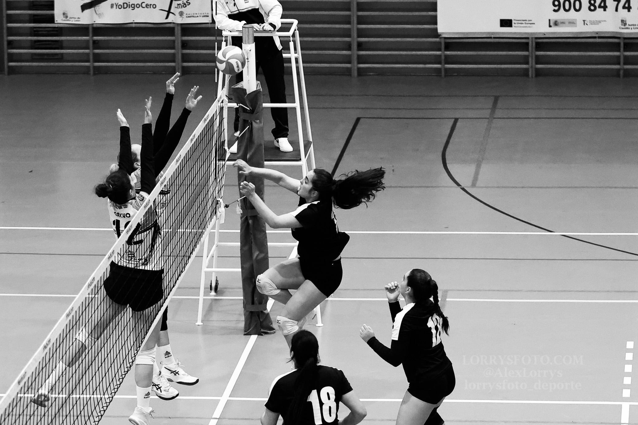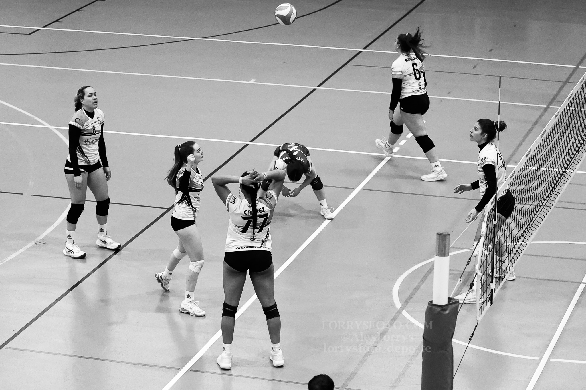 Fotografías del partido de la 15ª jornada del Grupo D de la Primera Nacional Femenina de Voleibol entre el Universidad de Salamanca y el CUV Alcorcón, en el polideportivo Miguel de Unamuno:
