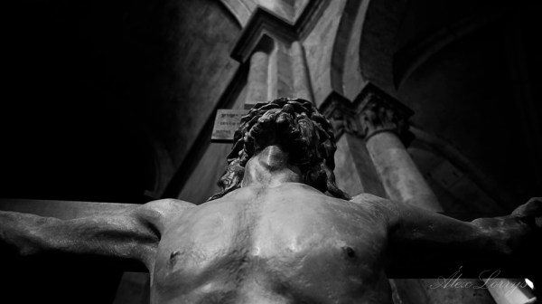Catedral, Clerecía, nos cruzamos la Rúa Mayor y llegamos a San Martín. A los pies de su altar, con su mirada hacia la claridad, aguarda el Cristo de la Humildad, imagen titular de la Hermandad Franciscana: